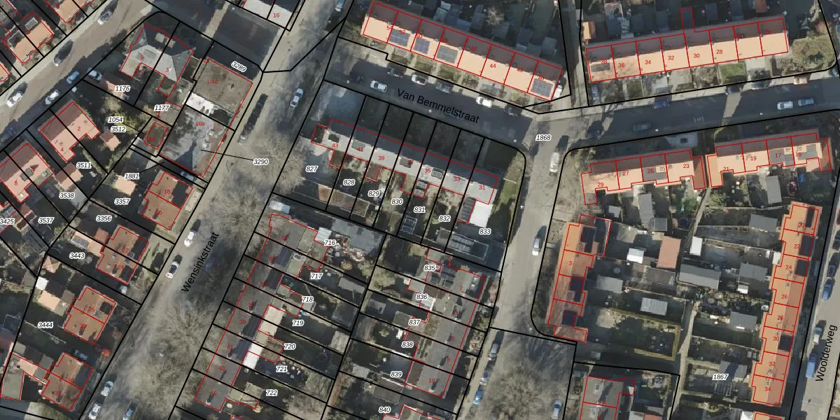 Gebruik de zoekbalk of klik op een perceel om informatie over het perceel te bekijken.