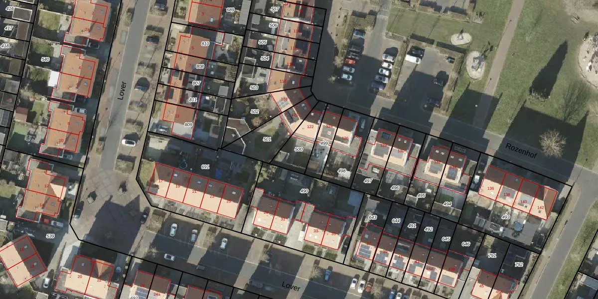 Gebruik de zoekbalk of klik op een perceel om informatie over het perceel te bekijken.