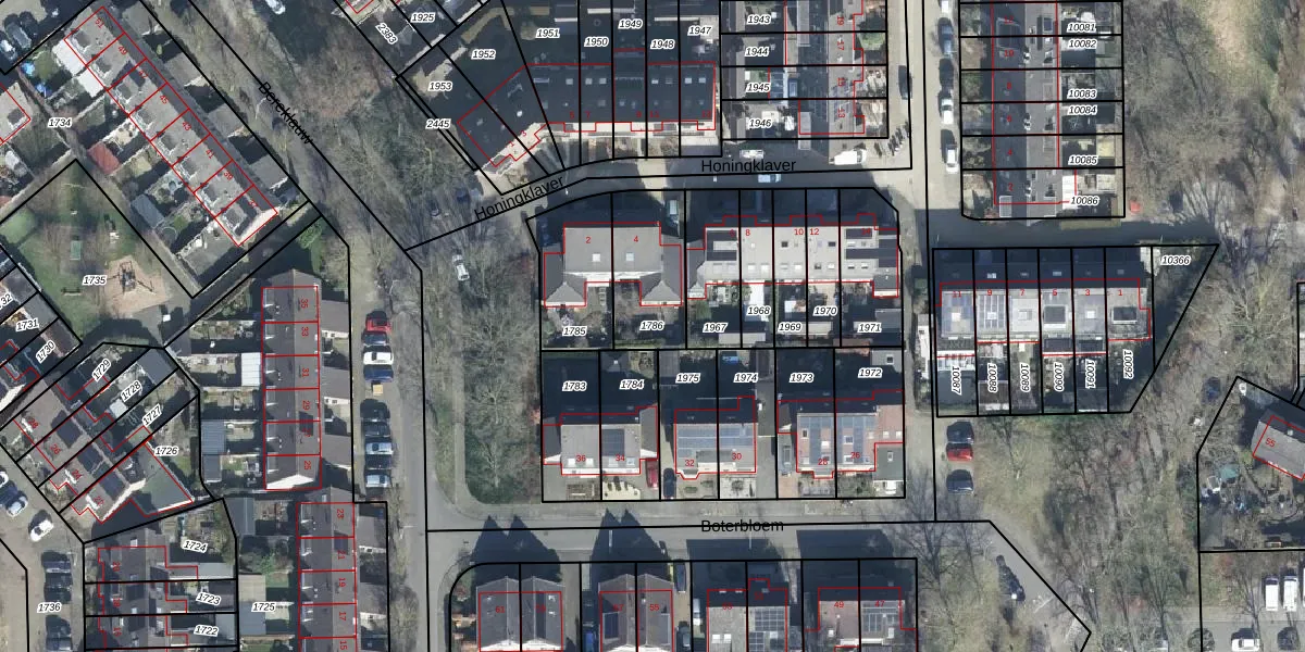 Gebruik de zoekbalk of klik op een perceel om informatie over het perceel te bekijken.