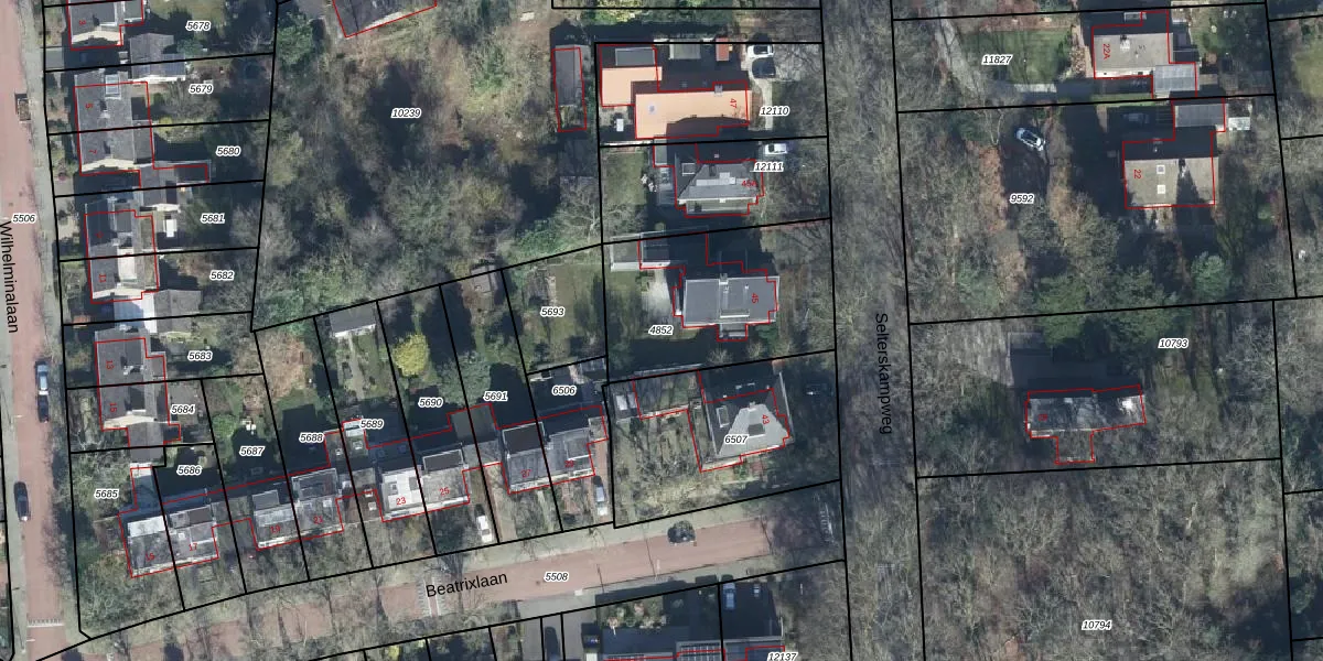 Gebruik de zoekbalk of klik op een perceel om informatie over het perceel te bekijken.