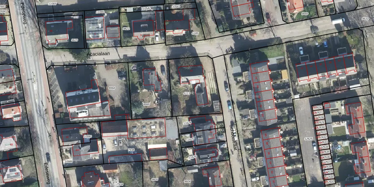 Gebruik de zoekbalk of klik op een perceel om informatie over het perceel te bekijken.