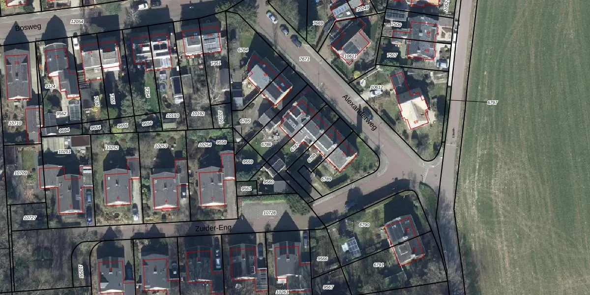 Gebruik de zoekbalk of klik op een perceel om informatie over het perceel te bekijken.