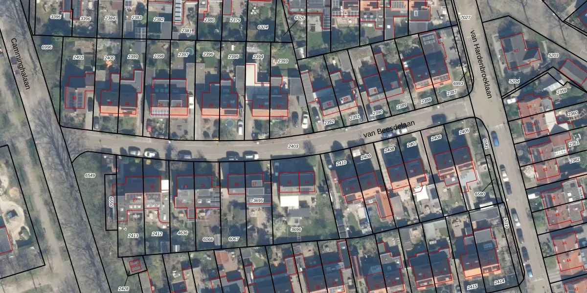Gebruik de zoekbalk of klik op een perceel om informatie over het perceel te bekijken.