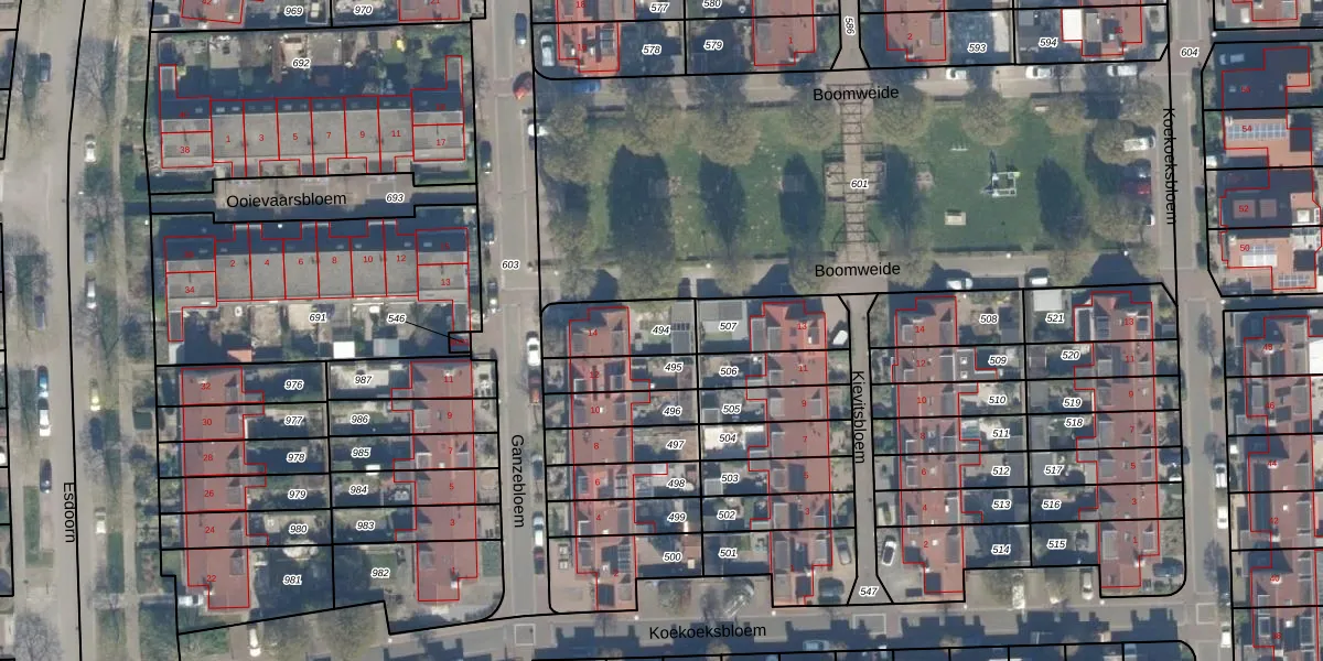 Gebruik de zoekbalk of klik op een perceel om informatie over het perceel te bekijken.