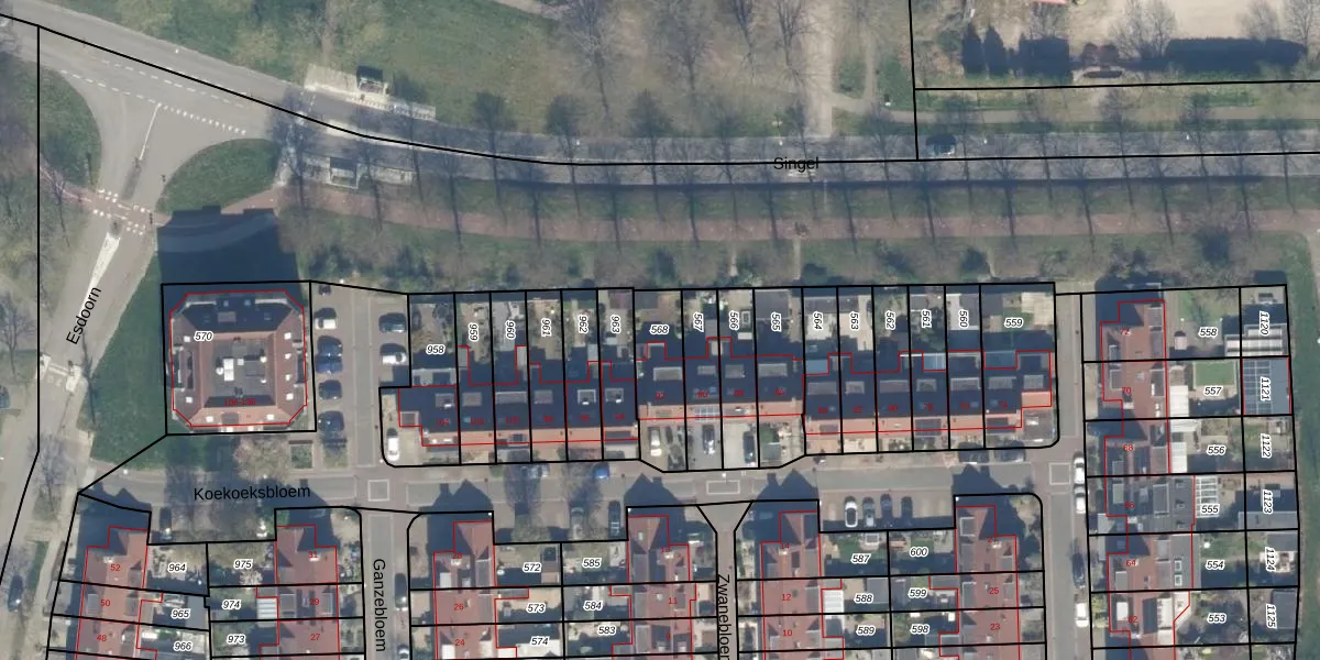 Gebruik de zoekbalk of klik op een perceel om informatie over het perceel te bekijken.