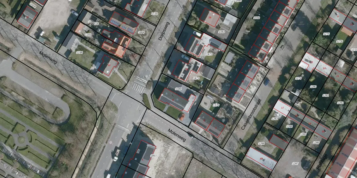 Gebruik de zoekbalk of klik op een perceel om informatie over het perceel te bekijken.