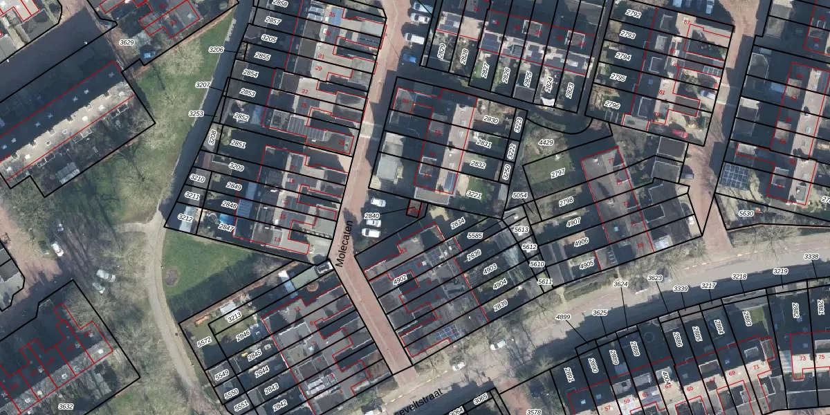 Gebruik de zoekbalk of klik op een perceel om informatie over het perceel te bekijken.