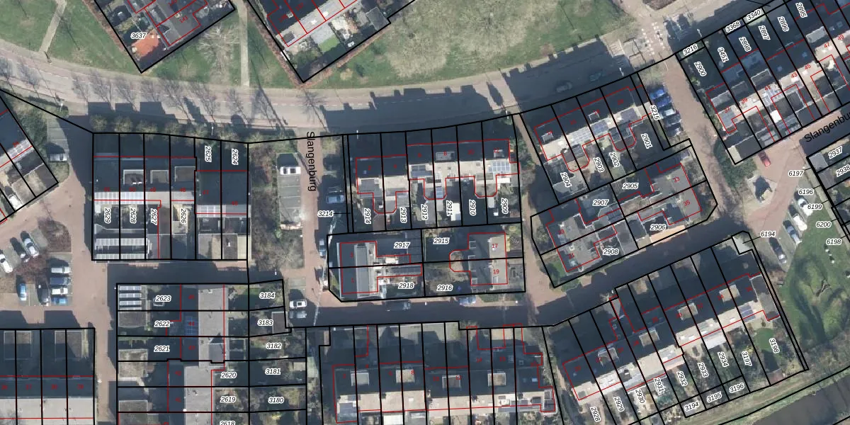 Gebruik de zoekbalk of klik op een perceel om informatie over het perceel te bekijken.