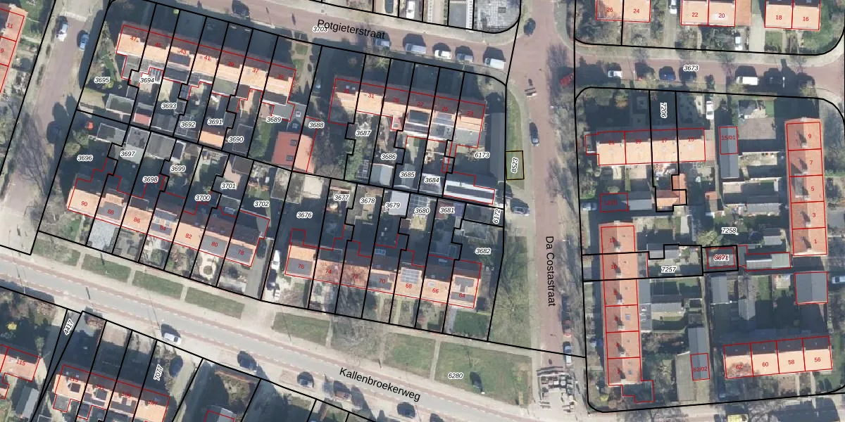 Gebruik de zoekbalk of klik op een perceel om informatie over het perceel te bekijken.