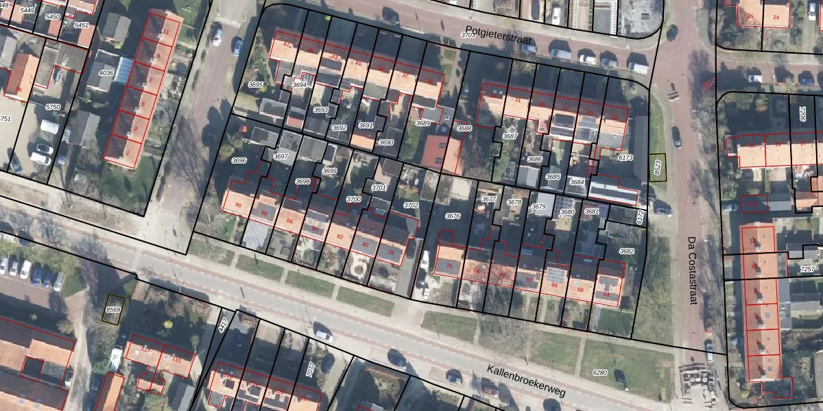 Gebruik de zoekbalk of klik op een perceel om informatie over het perceel te bekijken.