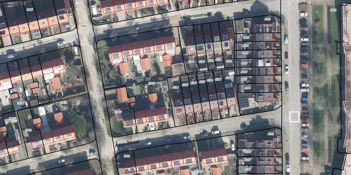 Gebruik de zoekbalk of klik op een perceel om informatie over het perceel te bekijken.