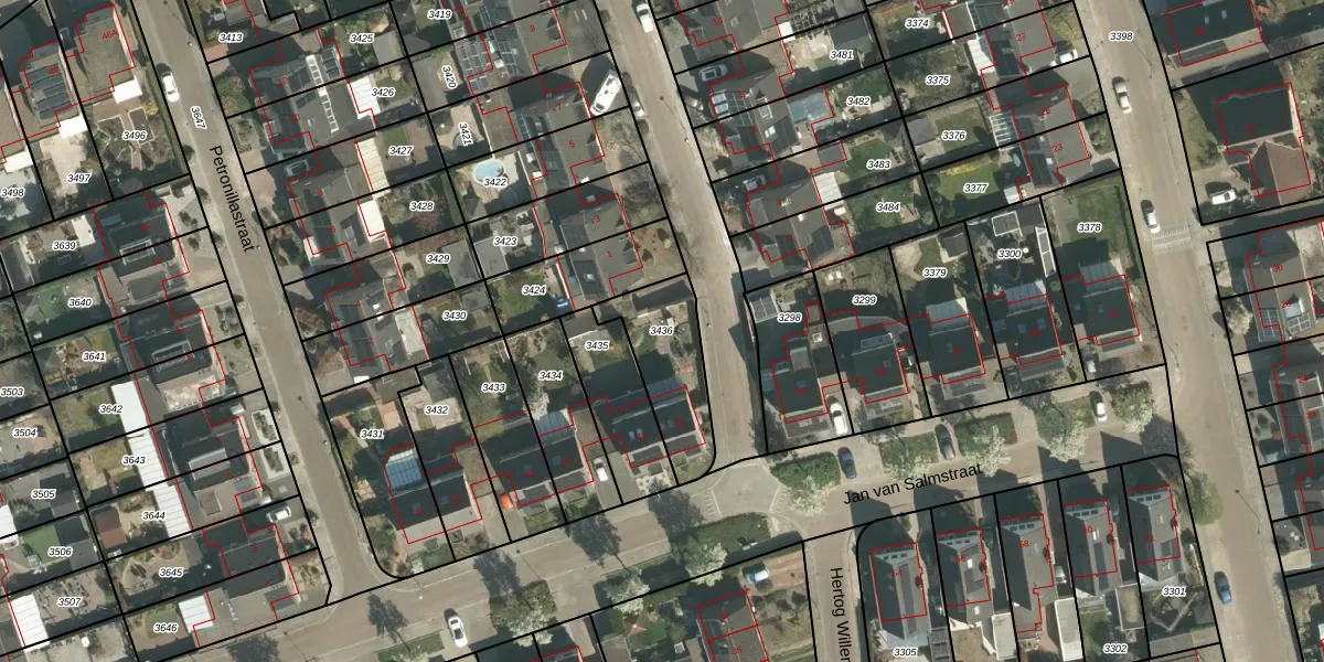 Gebruik de zoekbalk of klik op een perceel om informatie over het perceel te bekijken.