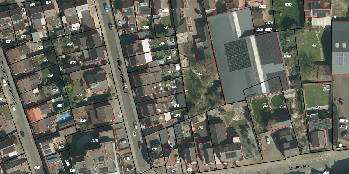 Gebruik de zoekbalk of klik op een perceel om informatie over het perceel te bekijken.