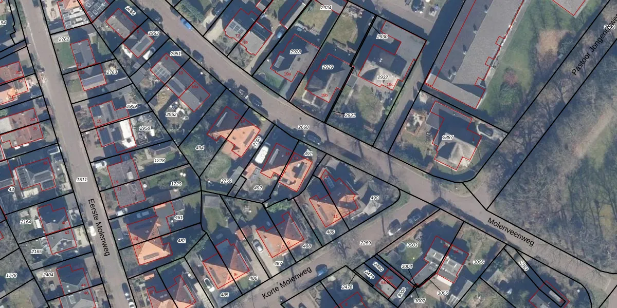 Gebruik de zoekbalk of klik op een perceel om informatie over het perceel te bekijken.