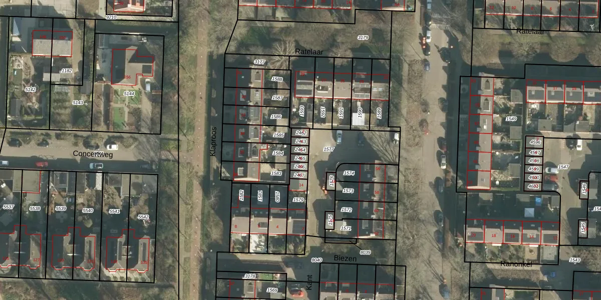 Gebruik de zoekbalk of klik op een perceel om informatie over het perceel te bekijken.