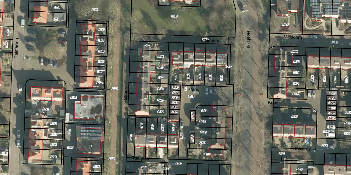 Gebruik de zoekbalk of klik op een perceel om informatie over het perceel te bekijken.
