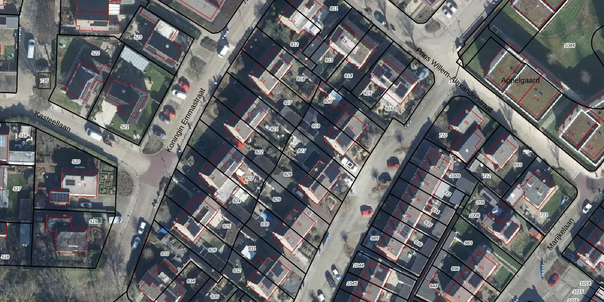 Gebruik de zoekbalk of klik op een perceel om informatie over het perceel te bekijken.