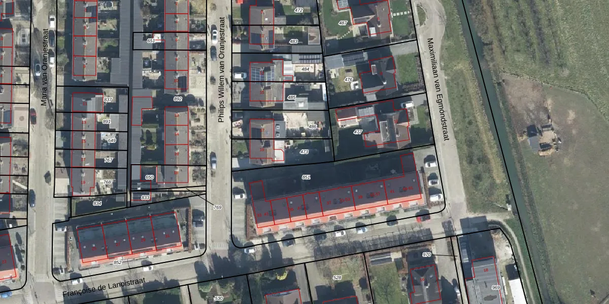 Gebruik de zoekbalk of klik op een perceel om informatie over het perceel te bekijken.