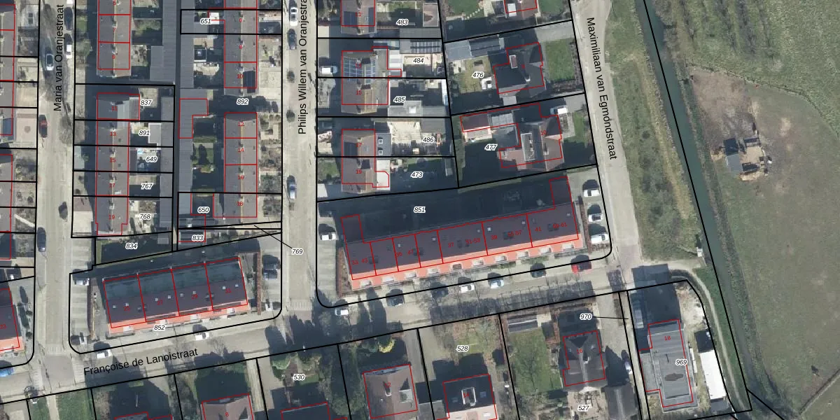 Gebruik de zoekbalk of klik op een perceel om informatie over het perceel te bekijken.