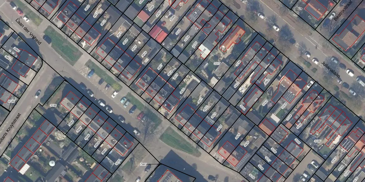 Gebruik de zoekbalk of klik op een perceel om informatie over het perceel te bekijken.