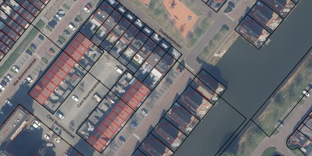 Gebruik de zoekbalk of klik op een perceel om informatie over het perceel te bekijken.