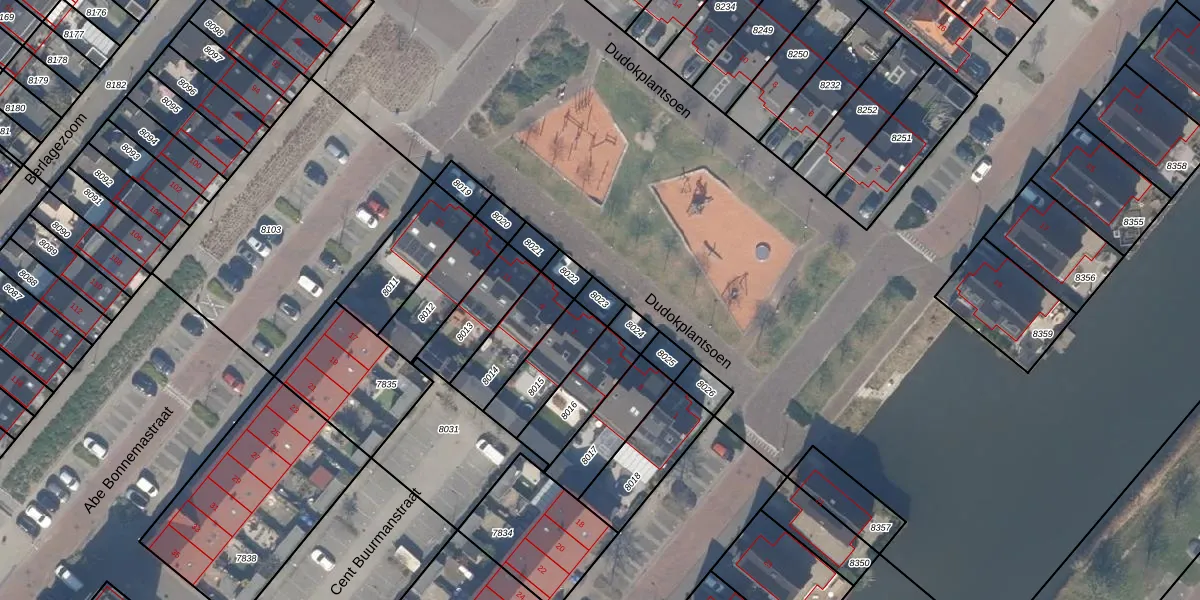 Gebruik de zoekbalk of klik op een perceel om informatie over het perceel te bekijken.