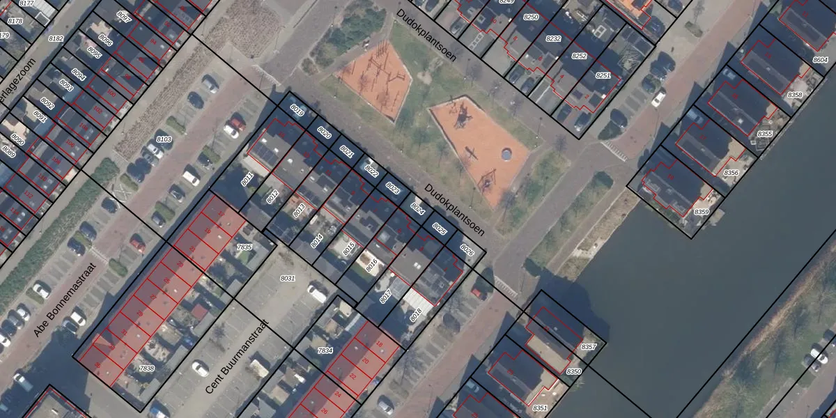 Gebruik de zoekbalk of klik op een perceel om informatie over het perceel te bekijken.