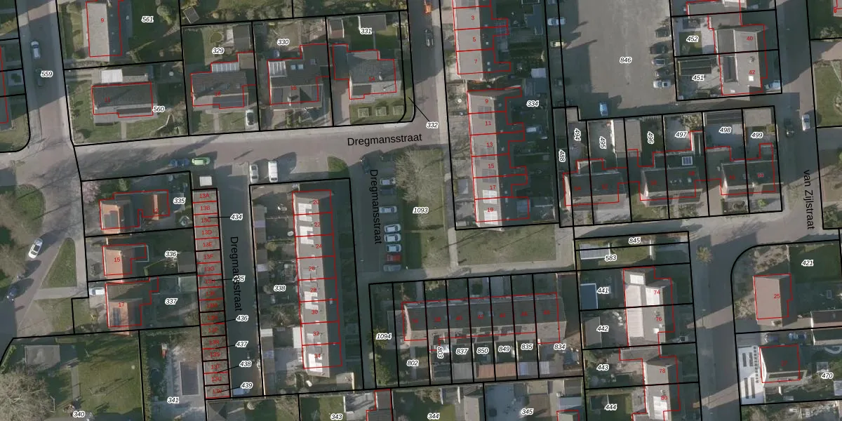 Gebruik de zoekbalk of klik op een perceel om informatie over het perceel te bekijken.