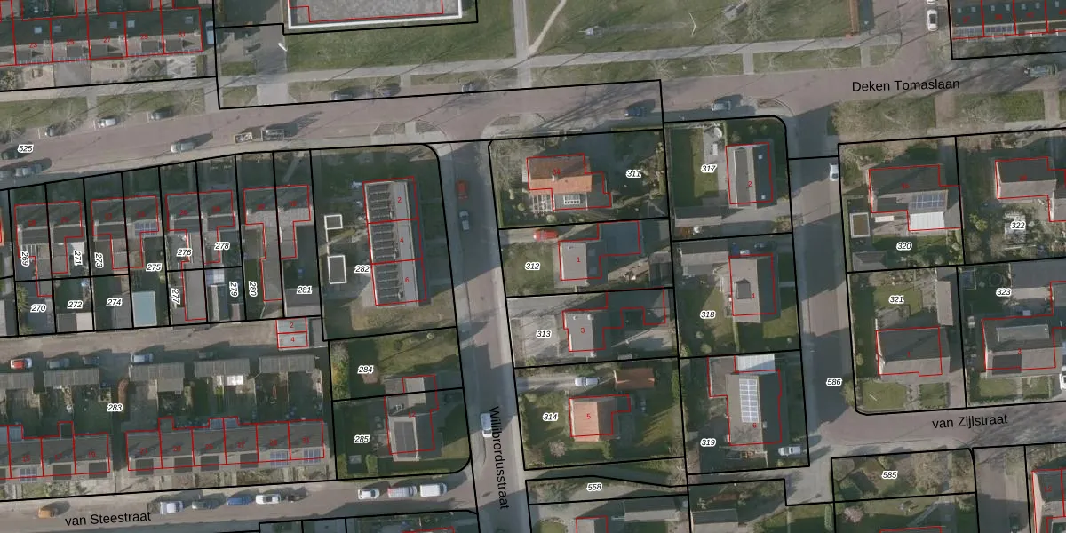 Gebruik de zoekbalk of klik op een perceel om informatie over het perceel te bekijken.