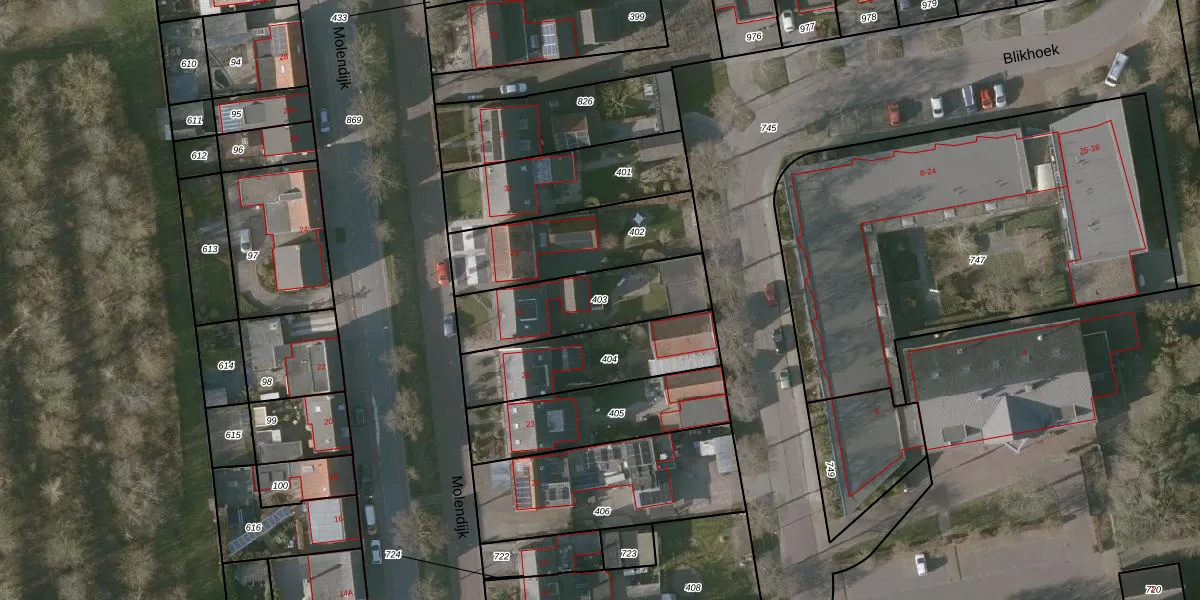 Gebruik de zoekbalk of klik op een perceel om informatie over het perceel te bekijken.