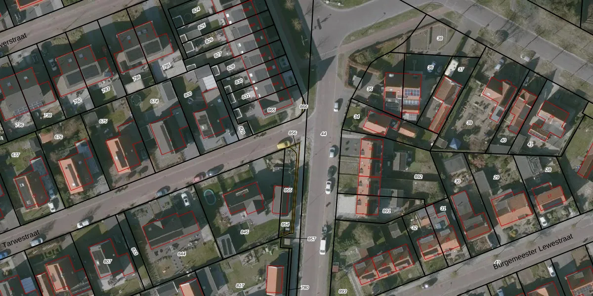 Gebruik de zoekbalk of klik op een perceel om informatie over het perceel te bekijken.