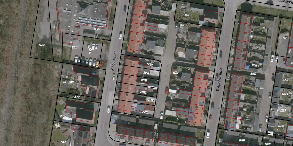 Gebruik de zoekbalk of klik op een perceel om informatie over het perceel te bekijken.