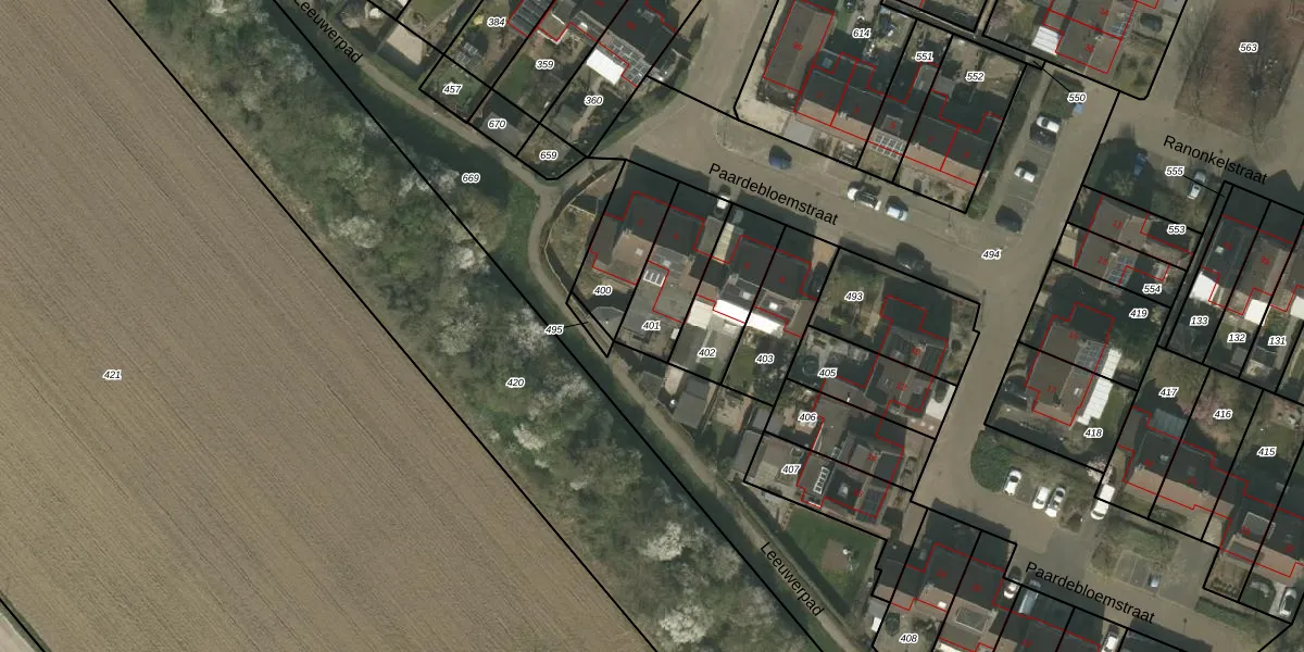 Gebruik de zoekbalk of klik op een perceel om informatie over het perceel te bekijken.