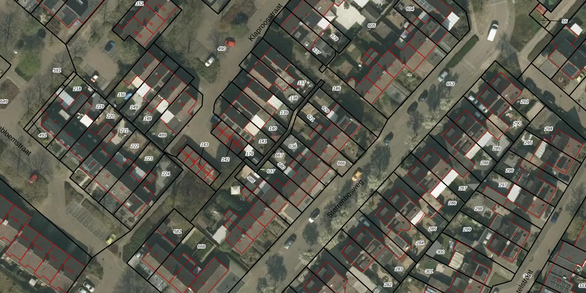 Gebruik de zoekbalk of klik op een perceel om informatie over het perceel te bekijken.