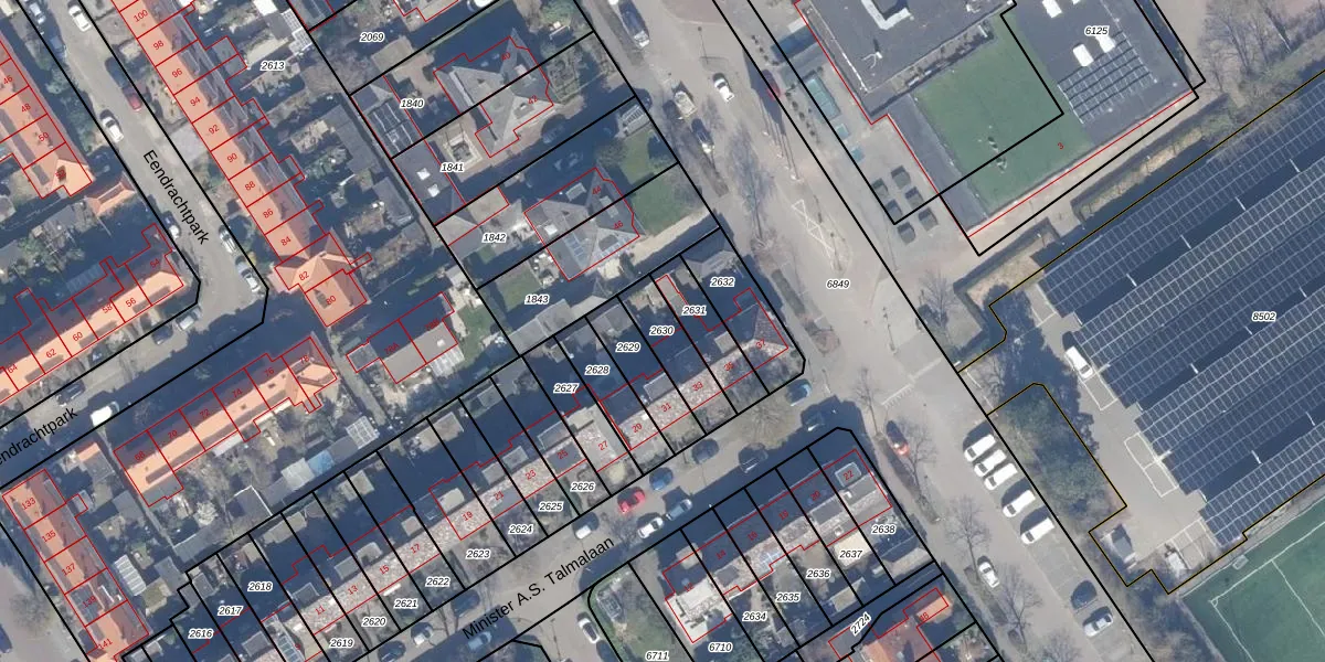 Gebruik de zoekbalk of klik op een perceel om informatie over het perceel te bekijken.