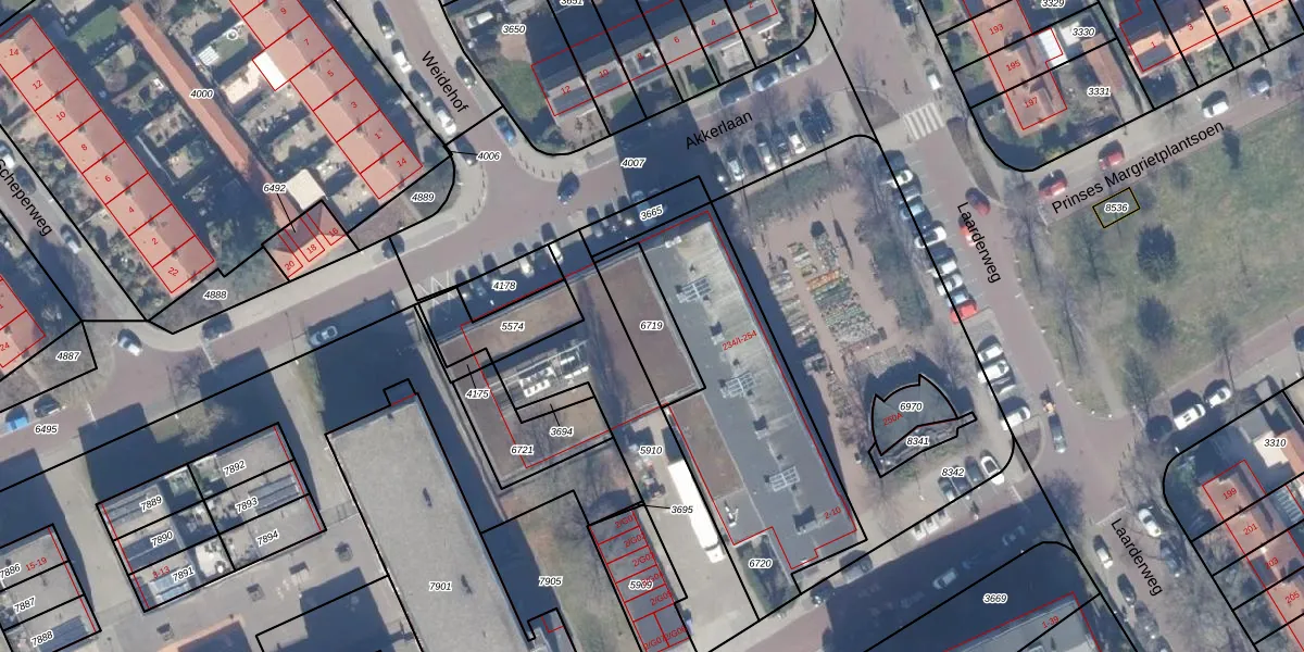 Gebruik de zoekbalk of klik op een perceel om informatie over het perceel te bekijken.