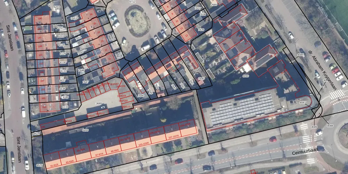 Gebruik de zoekbalk of klik op een perceel om informatie over het perceel te bekijken.