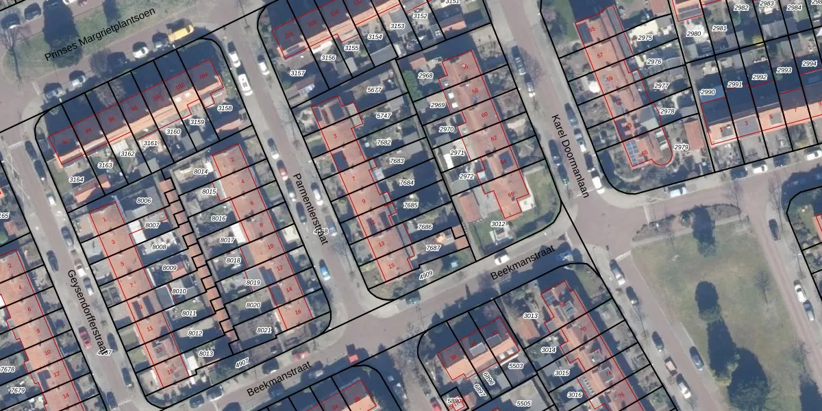 Gebruik de zoekbalk of klik op een perceel om informatie over het perceel te bekijken.