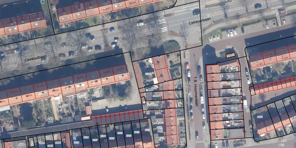 Gebruik de zoekbalk of klik op een perceel om informatie over het perceel te bekijken.