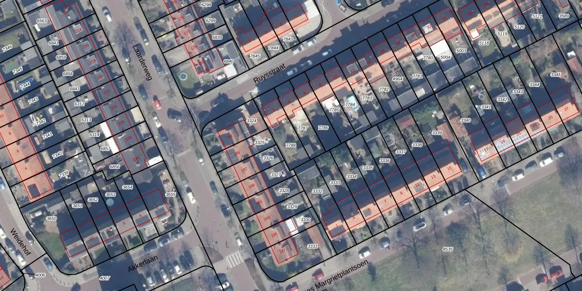 Gebruik de zoekbalk of klik op een perceel om informatie over het perceel te bekijken.