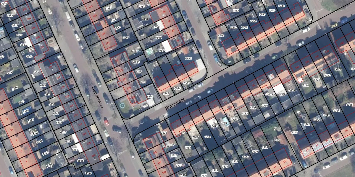 Gebruik de zoekbalk of klik op een perceel om informatie over het perceel te bekijken.