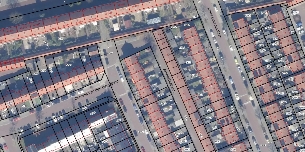 Gebruik de zoekbalk of klik op een perceel om informatie over het perceel te bekijken.