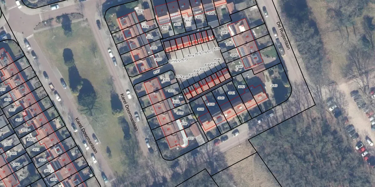 Gebruik de zoekbalk of klik op een perceel om informatie over het perceel te bekijken.