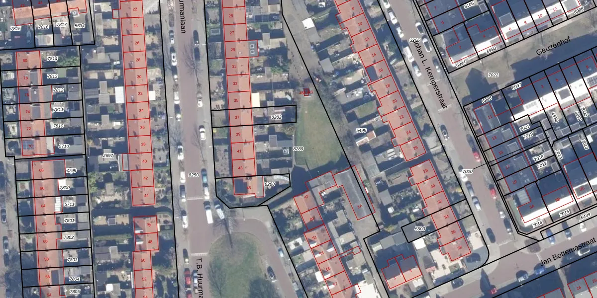 Gebruik de zoekbalk of klik op een perceel om informatie over het perceel te bekijken.