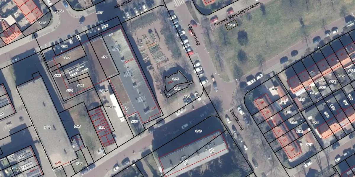 Gebruik de zoekbalk of klik op een perceel om informatie over het perceel te bekijken.