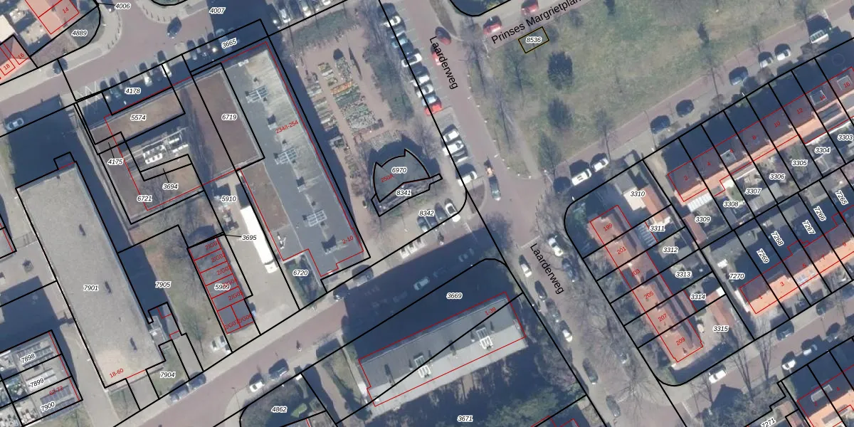 Gebruik de zoekbalk of klik op een perceel om informatie over het perceel te bekijken.