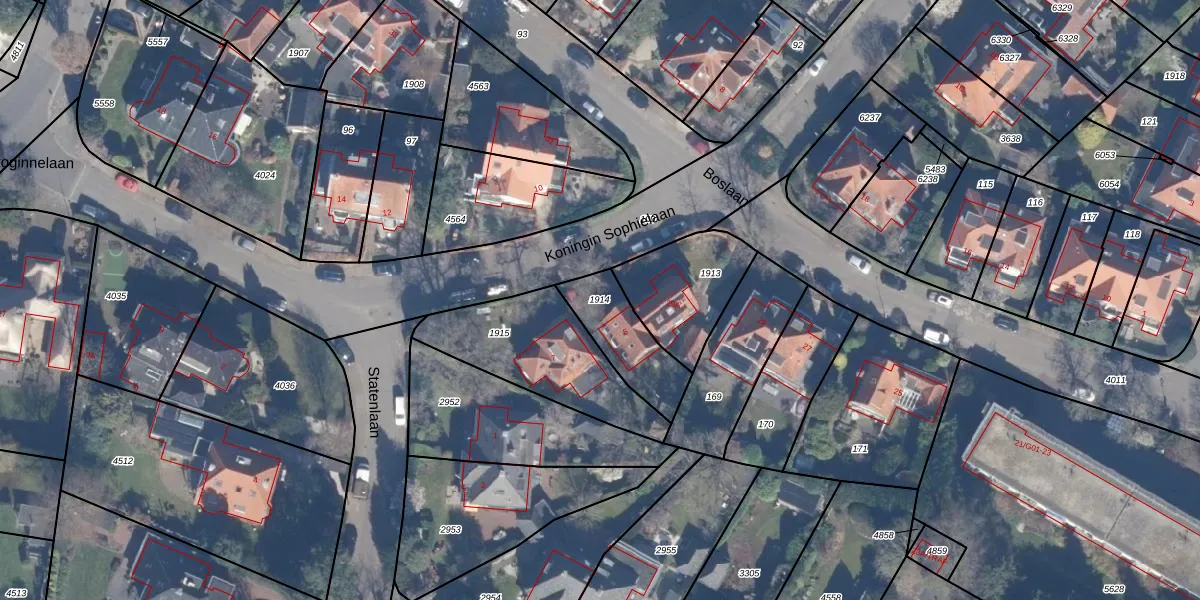 Gebruik de zoekbalk of klik op een perceel om informatie over het perceel te bekijken.