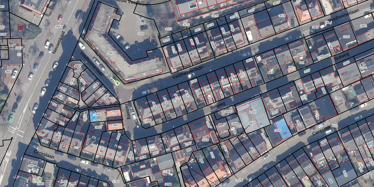 Gebruik de zoekbalk of klik op een perceel om informatie over het perceel te bekijken.