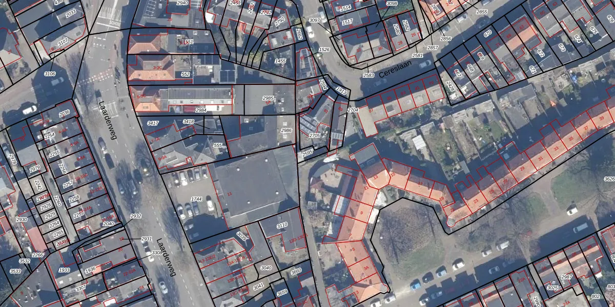 Gebruik de zoekbalk of klik op een perceel om informatie over het perceel te bekijken.