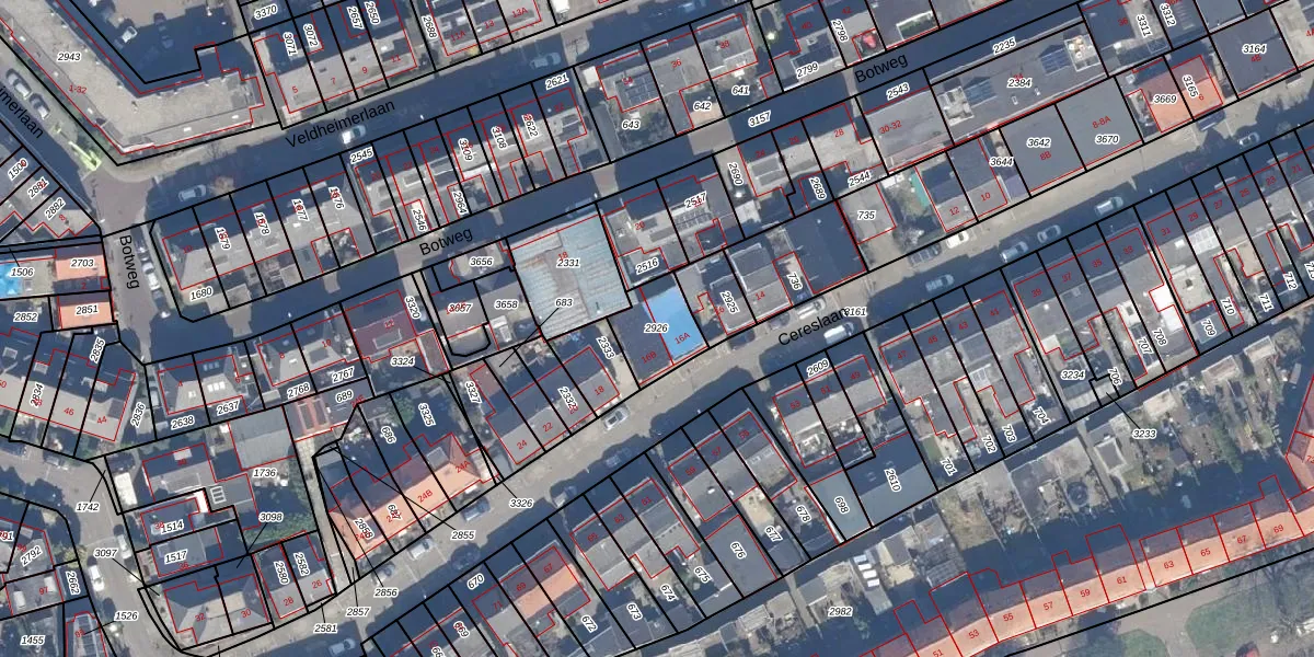 Gebruik de zoekbalk of klik op een perceel om informatie over het perceel te bekijken.